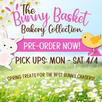 Spring treats for the best bunny chasers! Pre-order from our Bunny Basket Bakery Collection and spoil your pup with festive goodies!